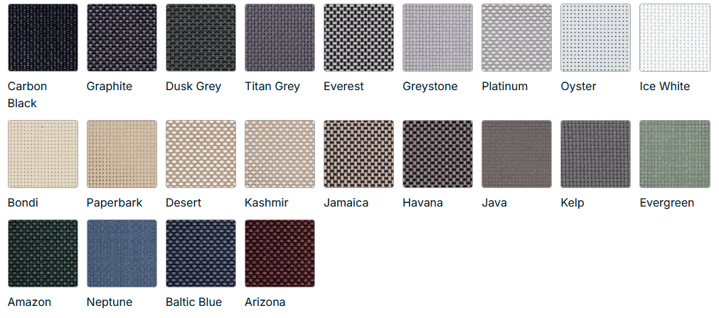 Visiontex® Plus is a durable PVC-coated, high-tensile polyester mesh designed for outdoor use. Featuring a strong 2 x 2 heavy-gauge weave, it offers excellent versatility and is ideal for DIY straight drop awnings. With a range of colours available, you can easily find a style to suit your home.