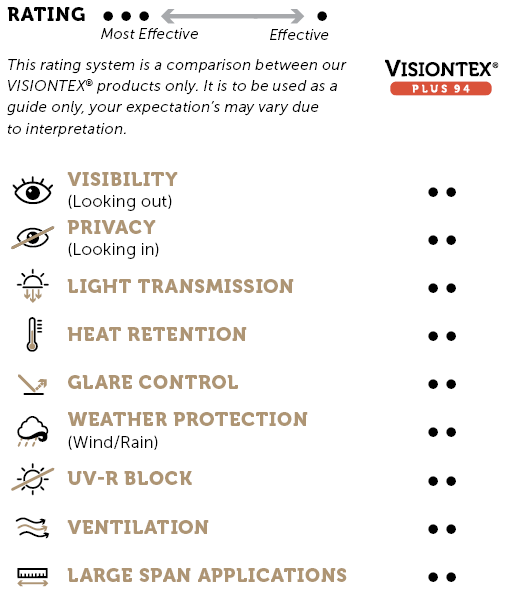 Visiontex® maintains your view while reducing visibility from the outside during the day. It helps minimise light, glare, UV rays, and weather exposure, all while allowing airflow for comfortable ventilation.